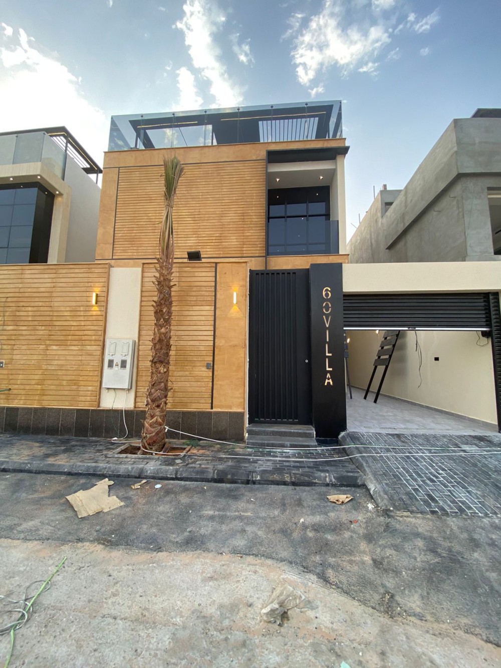 الدور الارضي مدخل سياره وملحق خارجي ومجلس ومقلط وصاله ومطبخ ومؤسس مصعد وتكييف مركزي وشلال